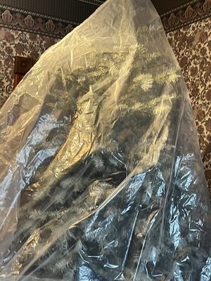 ツリーは、お水がはいった桶に入っておりますけど、さすがに6週間も室内にありますので、からっから。とっても軽くなってます。