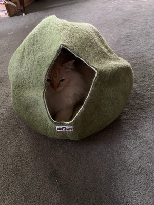 ニュージーランドのウールでできた猫のおうち、ですよ。