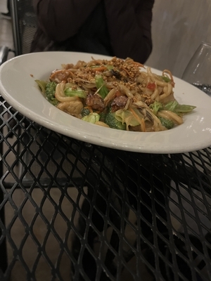 バックに潜ませておる、マイぽん酢。ちょびっとかけていただきましたら、これが大正解。エルちゃんのおうどんは、甘くないピーナッツソースで和えてある焼きうどん風のもの。結構くたくたですが、それなりに美味しいです。