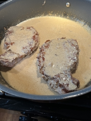 ソースは生クリーム、粒マスタード、隠し味にお醤油。