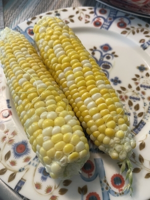 時期早々だったのか、小さくてやせ細った、栄養失調的とうもろこし。お味も薄め。